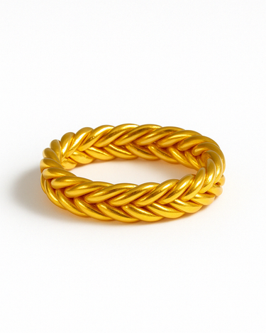 Tubo de silicona flexible de 2 mm de grosor, relleno con auténticas láminas de pan de oro. Cada pulsera ha sido bendecida para convertirse en algo más que un accesorio: