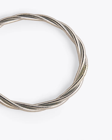 Tubo de silicona flexible de 2 mm de grosor, relleno con auténticas láminas de pan de oro. Cada pulsera ha sido bendecida para convertirse en algo más que un accesorio: