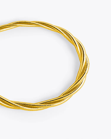 Tubo de silicona flexible de 2 mm de grosor, relleno con auténticas láminas de pan de oro. Cada pulsera ha sido bendecida para convertirse en algo más que un accesorio: